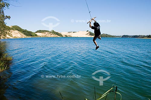 Subject: Young man swinging over Arroio Corrente Lagoon / Place: Jaguaruna - Santa Catarina state - Brazil / Date: 16/08/2009