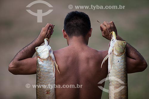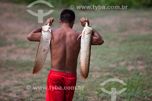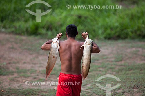 •  Riverine man carrying aruana fish  - Manaus city - Amazonas state (AM) - Brazil