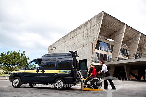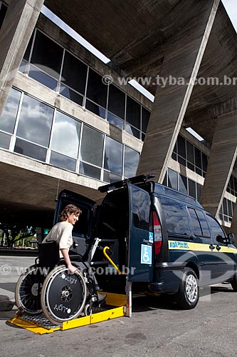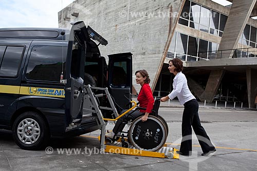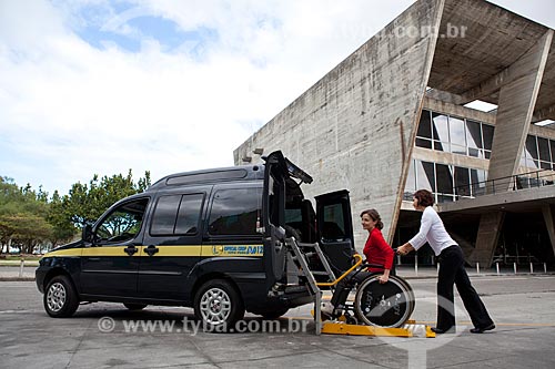 •  Subject: Wheelchair users getting on a lift eqquiped taxi in front of Modern Art Museum - MAM  / Place:  Rio de Janeiro city - Rio de Janeiro state - Brazil  / Date: 12/06/2010