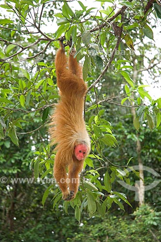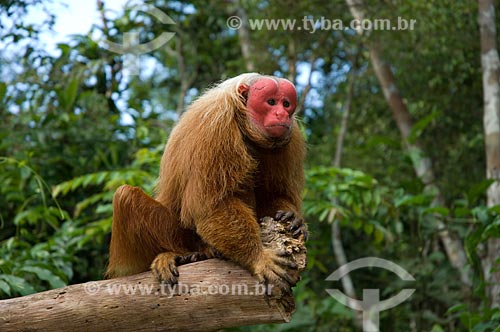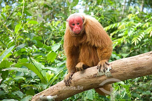 Subject: Male Red Bald-headed Uakari (Cacajao rubicundus) in the Amazon Ecopark Jungle Lodge touristic complex / Place: Manaus - Amazonas state - Brazil / Date: 01/2006