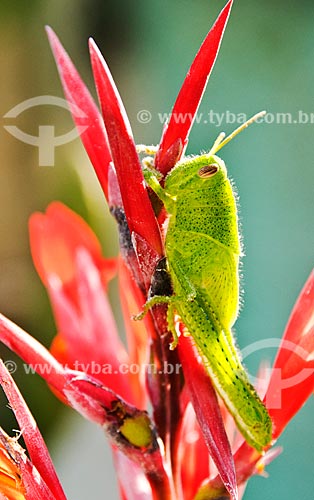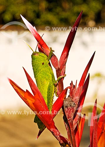 Subject: Grasshopper feeding on Heliconia / Place: Niteroi city - Rio de Janeiro state (RJ) - Brazil / Date: 04/2013