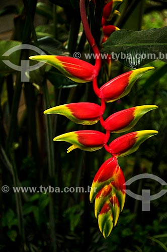 • Detail of heliconia (Heliconia rostrata) - Pedra Branca State Park - Rio de Janeiro city - Rio de Janeiro state (RJ) - Brazil