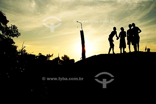 Subject: Boys playing with kite in the sunset / Local: Favela of Preventório, Charitas, Niteroi - RJ / Date: August of 2003