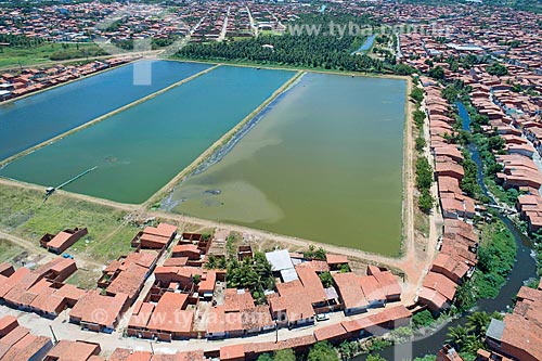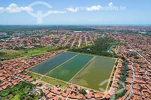 Picture taken with drone of the sewage treatment station of Company for Water and Sewage of Ceara (CAGECE) - Fortaleza city - Ceara state (CE) - Brazil