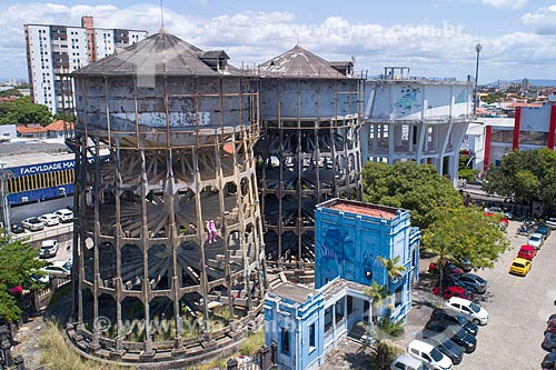 Picture taken with drone of the old water tanks (1926) of Company for Water and Sewage of Ceara (CAGECE) - water and sewage treatment services concessionaire - Fortaleza city - Ceara state (CE) - Brazil