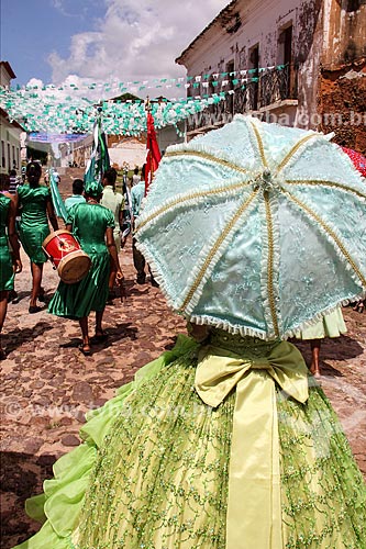 •  Young member of the Empire (part of the plot) with the Caixeiras of the Divine in the background during the Festa do divino  - Alcantara city - Maranhao state (MA) - Brazil