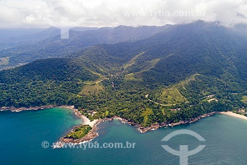Picture taken with drone of the Doutor Manuel Hipolito Rego Highway (SP-055) near to Calhetas neighborhood - Sao Sebastiao city - Sao Paulo state (SP) - Brazil
