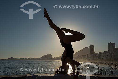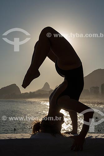 •  Woman practicing Yoga - Mirante do Leme - also known as Caminho dos Pescadores (Fisherman Path) - shirshasana movement  - Rio de Janeiro city - Rio de Janeiro state (RJ) - Brazil