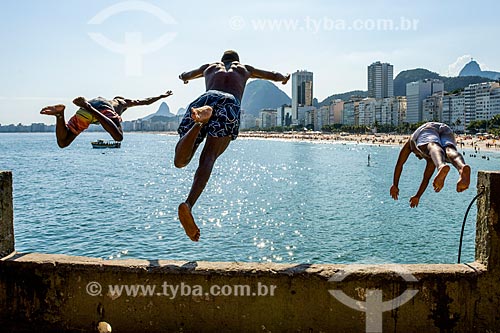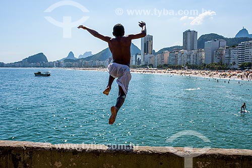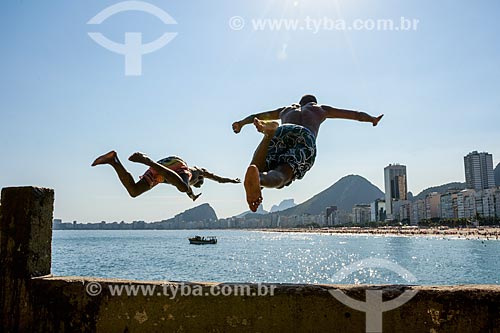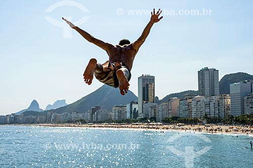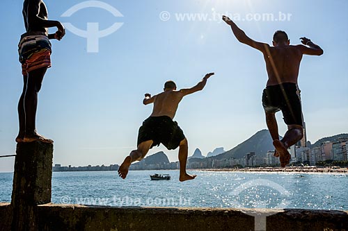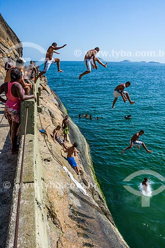 Young jumping into the sea from stone - Mirante do Leme - also known as Caminho dos Pescadores (Fisherman Path) - Rio de Janeiro city - Rio de Janeiro state (RJ) - Brazil