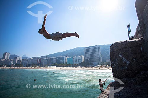 •  Young jumping into the sea from stone - Mirante do Leme - also known as Caminho dos Pescadores (Fisherman Path)  - Rio de Janeiro city - Rio de Janeiro state (RJ) - Brazil