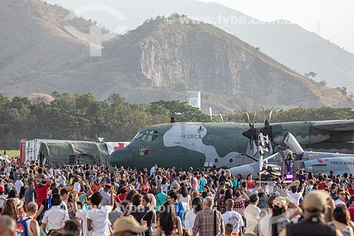 •  Public during the commemoration of the 145 years of the birth of Santos Dumont - Afonsos Air Force Base with the Hercules airplane from Brazilian Air Force in the background  - Rio de Janeiro city - Rio de Janeiro state (RJ) - Brazil