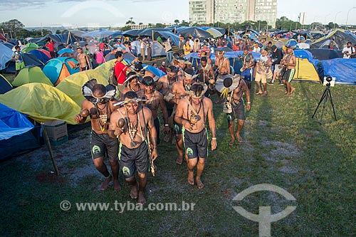 •  Dance ritual of Guarani tribe during the 15th Free Land Camp - Esplanade of Ministries  - Brasilia city - Distrito Federal (Federal District) (DF) - Brazil
