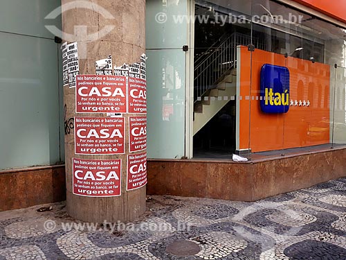 •  Campaign poster in favor of social isolation at the entrance of a bank in Cinelandia - Coronavirus Crisis  - Rio de Janeiro city - Rio de Janeiro state (RJ) - Brazil
