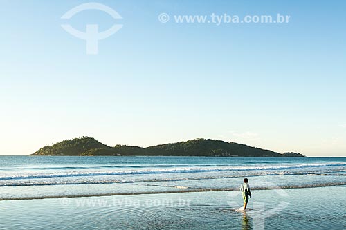 Subject: Surfer on Beach Morro das Pedras with the Campeche Island in the background / Place: Florianopolis city - Santa Catarina state (SC) - Brazil / Date: 07/2013