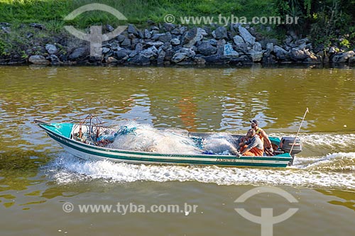 Fishermen - motorboat - Ponta Negra Channel - Marica city - Rio de Janeiro state (RJ) - Brazil