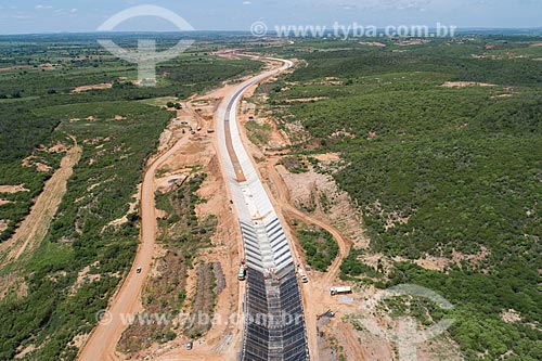 •  Picture taken with drone of the construction of the Project of Integration of Sao Francisco River with the watersheds of Northeast setentrional - north axis  - Jati city - Ceara state (CE) - Brazil
