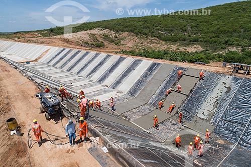 Picture taken with drone of the concretion of the Project of Integration of Sao Francisco River with the watersheds of Northeast setentrional - north axis - Jati city - Ceara state (CE) - Brazil