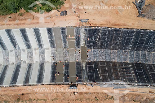 •  Picture taken with drone of the concretion of the Project of Integration of Sao Francisco River with the watersheds of Northeast setentrional - north axis  - Jati city - Ceara state (CE) - Brazil