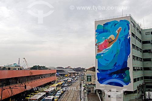 Mural called Natação (Swim) - National Institute of Cancer Jose Alencar Gomes da Silva (INCA) - Cancer Hospital II (HC II) - part of the Projeto Esporte Arte - Rio de Janeiro city - Rio de Janeiro state (RJ) - Brazil