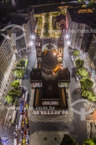Picture taken with drone of the Our Lady of Candelaria Church (1609) at dusk - Rio de Janeiro city - Rio de Janeiro state (RJ) - Brazil