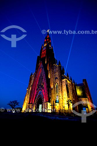 •  View of the Nossa Senhora de Lourdes Church - also know as Catedral de Pedra (Cathedral of Stone) - with special lighting during the night  - Canela city - Rio Grande do Sul state (RS) - Brazil