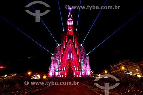 View of the Nossa Senhora de Lourdes Church - also know as Catedral de Pedra (Cathedral of Stone) - with special lighting during the night - Canela city - Rio Grande do Sul state (RS) - Brazil