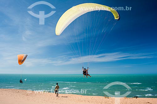 Paragliders - waterfront of Canoa Quebrada Beach - Aracati city - Ceara state (CE) - Brazil