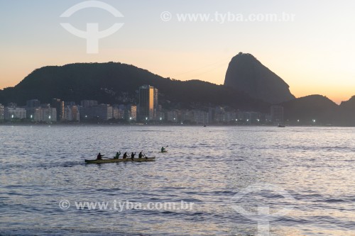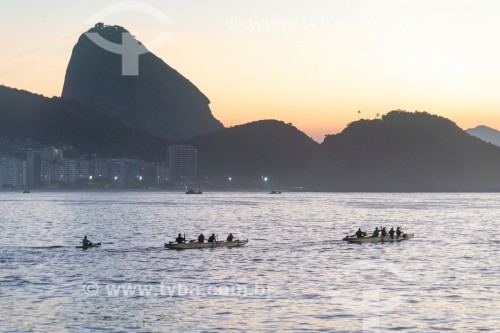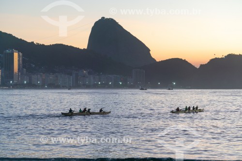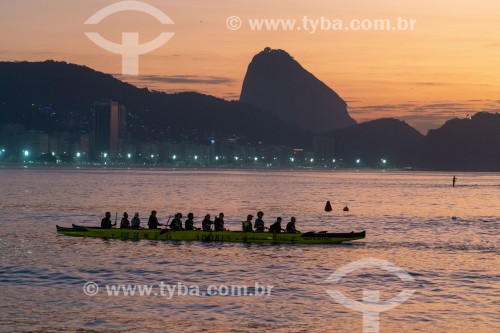 Hawaiian canoe on Copacabana Beach - Sugar loaf in the background - Rio de Janeiro city - Rio de Janeiro state (RJ) - Brazil
