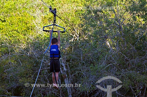 Boy in zipline - Bodoquena Mountain Range - Bodoquena city - Mato Grosso do Sul state (MS) - Brazil
