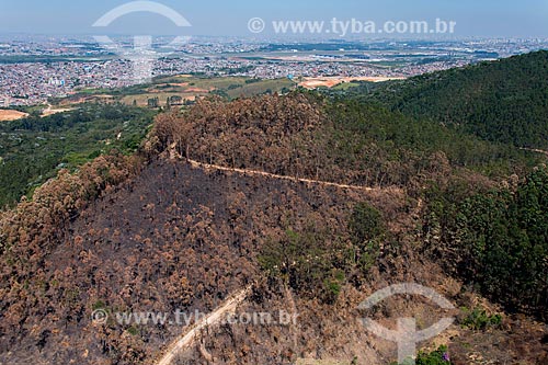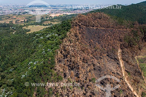 Aerial photo of burned vegetation - Cantareira Mountain Range - Guarulhos city - Sao Paulo state (SP) - Brazil