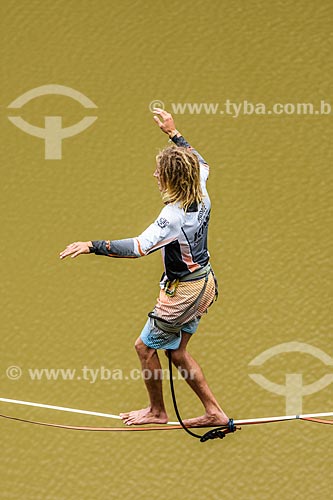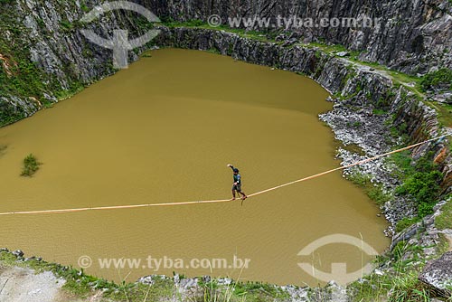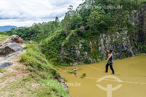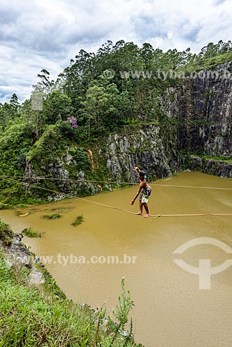 Practitioner of slackline - Dibs Quarry (Pedreira do Dib) - Mairipora city - Sao Paulo state (SP) - Brazil