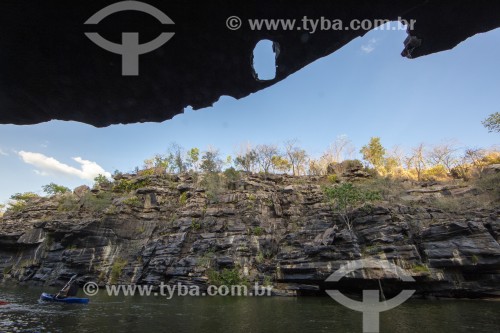 • Tourists watching canyon and river (Canyon 2) - Chapada dos Veadeiros National Park - Alto Paraiso de Goias city - Goias state (GO) - Brazil