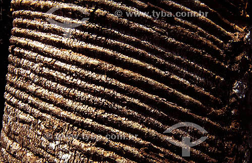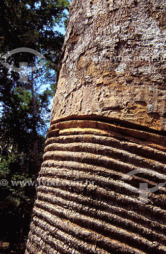 •  (Hevea brasiliensis) Rubber tree with cut marks for extraction of latex for future production of rubber  - Amazonas state - Brazil