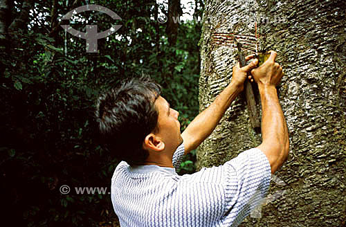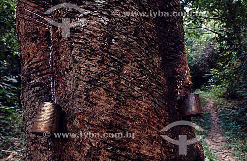 •  (Hevea brasiliensis) Rubber tree - extraction of latex for future production of rubber - Acre state - Brazil