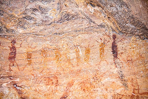Detail of rupestrian painting - hunting figures - Archaeological Site of Toca do Vento - Serra da Capivara National Park - Sao Raimundo Nonato city - Piaui state (PI) - Brazil