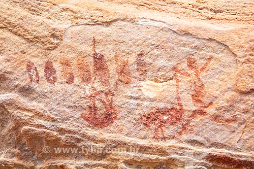 Detail of rupestrian painting - Archaeological Site of Toca do Vento - Serra da Capivara National Park - Sao Raimundo Nonato city - Piaui state (PI) - Brazil