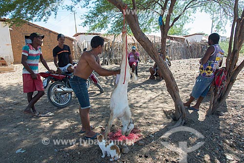 Man boning a goat (Capra aegagrus hircus) - Caatinga Grande Village - Truka tribe - Cabrobo city - Pernambuco state (PE) - Brazil