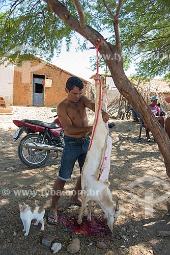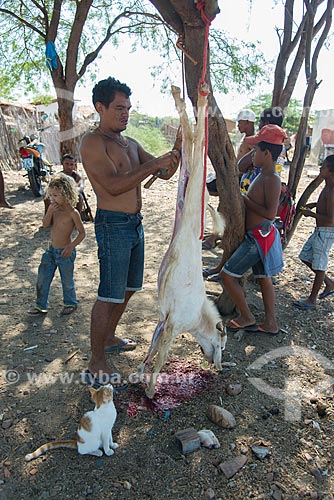 •  Man boning a goat (Capra aegagrus hircus) - Caatinga Grande Village - Truka tribe  - Cabrobo city - Pernambuco state (PE) - Brazil