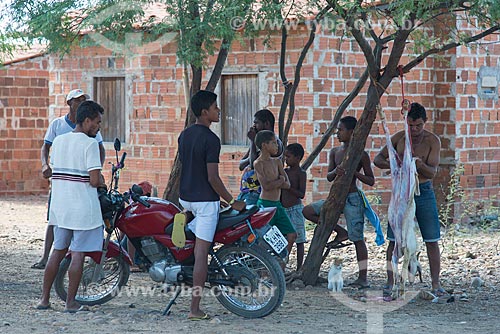 Indigenous from village of the Pipipas tribe carrying goat kid on motorcycle - Floresta city - Pernambuco state (PE) - Brazil