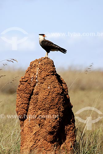 •  Subject: Southern Caracara (Caracara plancus) over a termite mounds - also known as termitaria in Emas National Park  / Place: Goias state - Brazil  / Date: 28/07/2006
