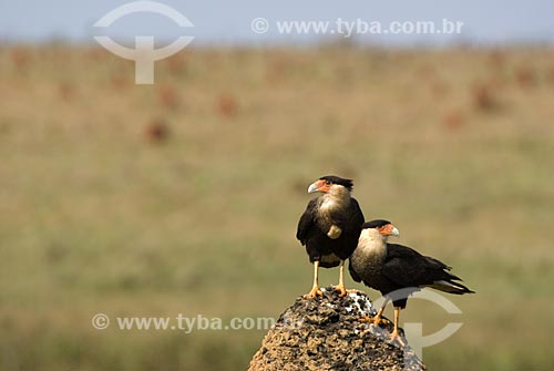 •  Subject: Southern Caracara (Caracara plancus) over a termite mounds - also known as termitaria in Emas National Park  / Place: Goias state - Brazil  / Date: 09/09/2007