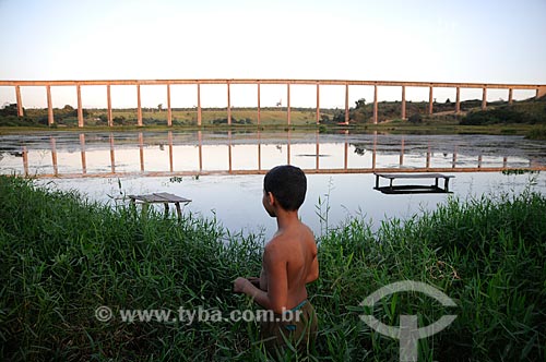 Subject: Bridge of Carajas Railway in the neighborhood of Piquia de Baixo - A boy in the foreground / Place: Acailandia city - Maranhao state (MA) - Brazil / Date: 05/2012