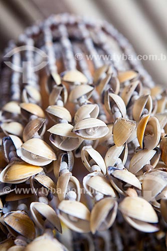 Subject: Detail of a Luminaire - Shell craftwork of the social project "Caranguejo Uca" - Ilha de Deus (Deus Island) / Place: Recife city - Pernambuco state - Brazil / Date: 14/10/2010