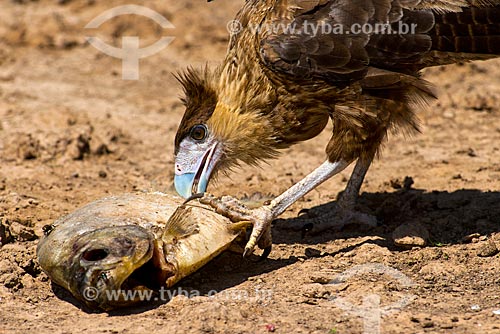 Subject: Carcara (Polyborus plancus) eating a Pacu / Place: Bodoquena city - Mato Grosso do Sul state (MS) - Brazil / Date: 10/2012