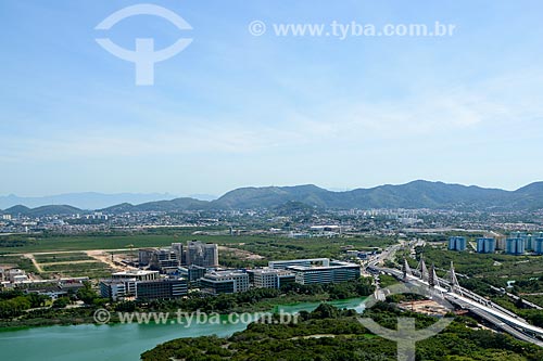 •  Subject: Aerial photo of Rio Office Park Commercial Center with the Cardeal Dom Eugênio de Araujo Sales Bridge (2013) to the right / Place: Barra da Tijuca neighborhood - Rio de Janeiro city - Rio de Janeiro state (RJ) - Brazil / Date: 11/2013