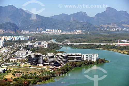 Subject: Aerial photo of Rio Office Park Commercial Center with the Cardeal Dom Eugênio de Araujo Sales Bridge (2013) to the right / Place: Barra da Tijuca neighborhood - Rio de Janeiro city - Rio de Janeiro state (RJ) - Brazil / Date: 11/2013