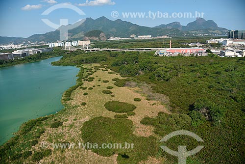 Aerial photo of the Jacarepagua Lagoon with the Cardeal Dom Eugênio de Araujo Sales Bridge (2013) in the background - Rio de Janeiro city - Rio de Janeiro state (RJ) - Brazil