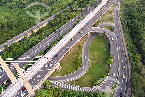 Aerial photo of the Cardeal Dom Eugênio de Araujo Sales Bridge (2013) with the Rock of Gavea in the background - Rio de Janeiro city - Rio de Janeiro state (RJ) - Brazil