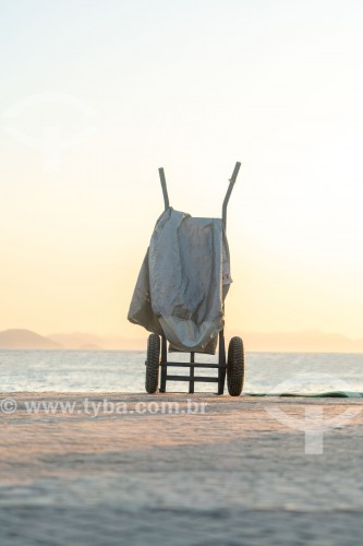 Cargo trolley for transporting surfboards on sidewalk of Copacabana Beach - Rio de Janeiro city - Rio de Janeiro state (RJ) - Brazil