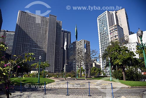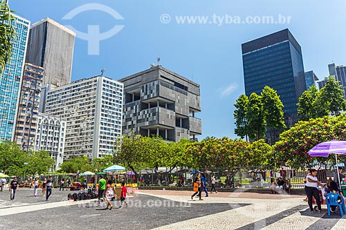 View of the Largo da Carioca Square with the build of the PETROBRAS headquarters - to the left - and the build of the National Bank for Economic and Social Development (BNDES) headquarters - to the right - Rio de Janeiro city - Rio de Janeiro state (RJ) - Brazil